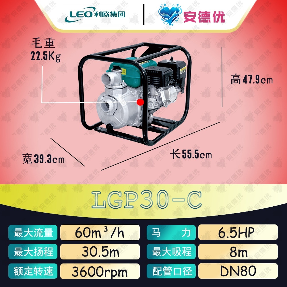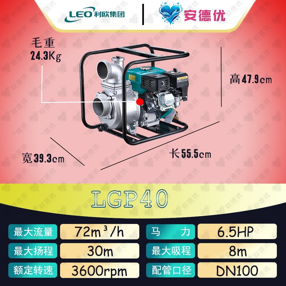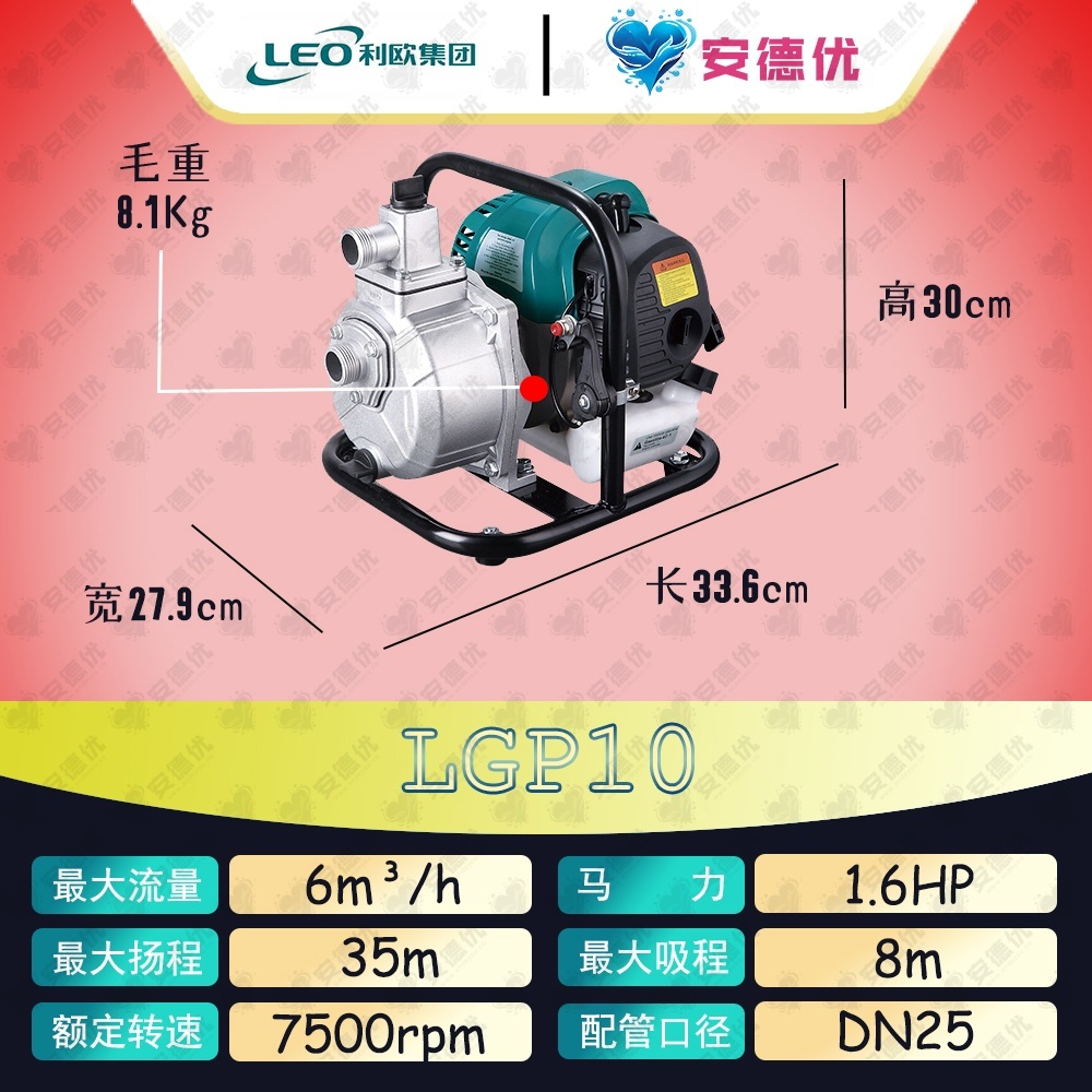 利欧汽油机水泵LGP系列是在常规汽油机水泵上进行了结构优化升级;点火更便捷,燃烧更充分,能耗小,更节能;整机结构更紧凑,便携式机架,移动更方便;采用机械密封,陶瓷对石墨材质,密封效果更好;并且运用流体仿真设计的高效率叶轮,性能优于市场同类产品。