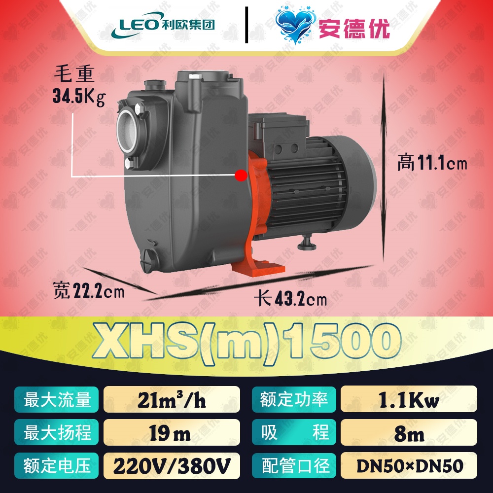 利欧自吸排污泵XHSm系列-该系列广泛用于工业、农业、河塘养殖、矿山、建筑工地、市政排污工程等场所,可抽送含有短纤维、纸屑、泥沙等固体颗粒或软性固态物的物体,如泥水、生活废水、污水等,是农业排灌、河塘澝淤和工地施工的理想水利设备,但不适用于有防爆要求的场台使用。铜线电机;轴承:单列向心球轴承;配件含有:泵体、叶轮、O型密封圈、机械密封、支架、定子、撑脚、轴承、转子、后端盖、风叶、风罩、进水接头、止回阀、罩盒盖、电容、罩盒。