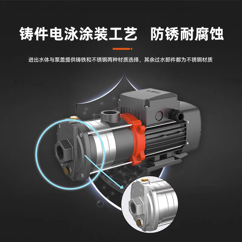 ECH-F系列为我是不锈钢多级泵,在家庭供水、工业、建筑方面有广泛的用途。可用于:空调暖通系统;楼宇供水、管道增压;工业设备配套;冷却水输送、循环(冷水机、煤改电空调系统、空气能等);水处理系统配套。