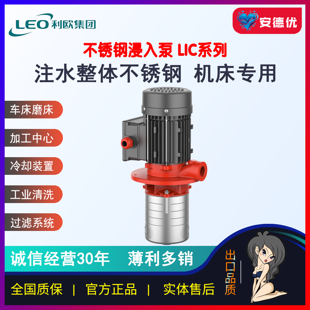 LIC系列为带集成电机的浸入式多级离心泵,本产品主要安装在水箱或容器顶部,水泵进口浸入液体中进行液体抽取和输送;为符合水箱或容器的安装深度,水泵的浸入深度可以进行定制;不同级数的浸入深度见可供产品范围。