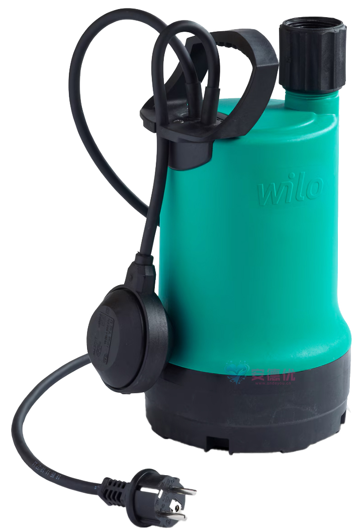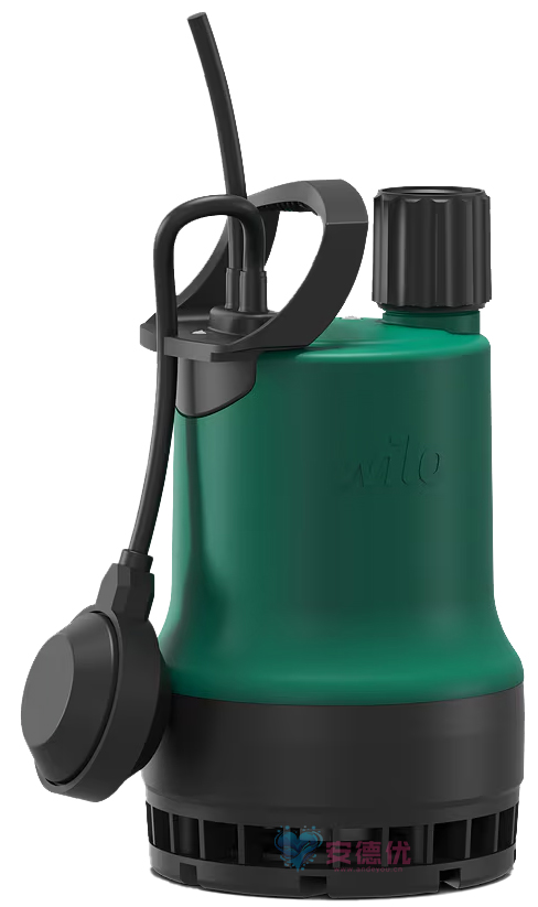 污水泵带集成式紊流器(Twister 旋流功能)、开放式多通道叶轮和垂直螺纹连接。水泵壳体、滤网和叶轮采用复合材料制成。1~电机(表面冷却),集成有运行电容器和自切换式电机过热保护装置。电机外壳由不锈钢制成。注油密封室采用双重密封:电机侧装有一个轴密封环,水泵侧装有一个机械密封。接线电缆带浮子开关和插头(CEE 7/7)。