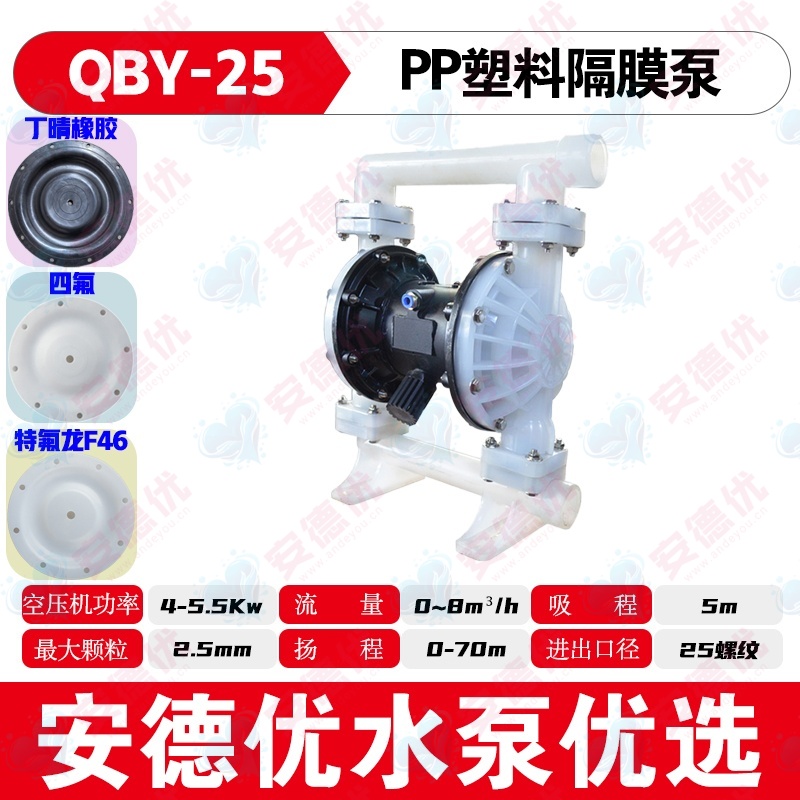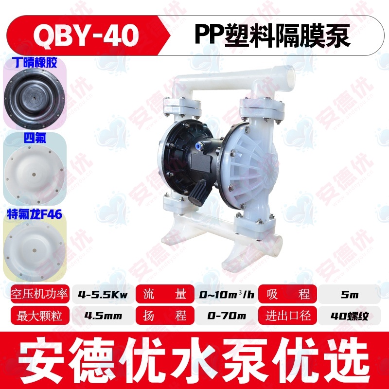 泵体、隔膜等关键部件采用PP工程塑料制造