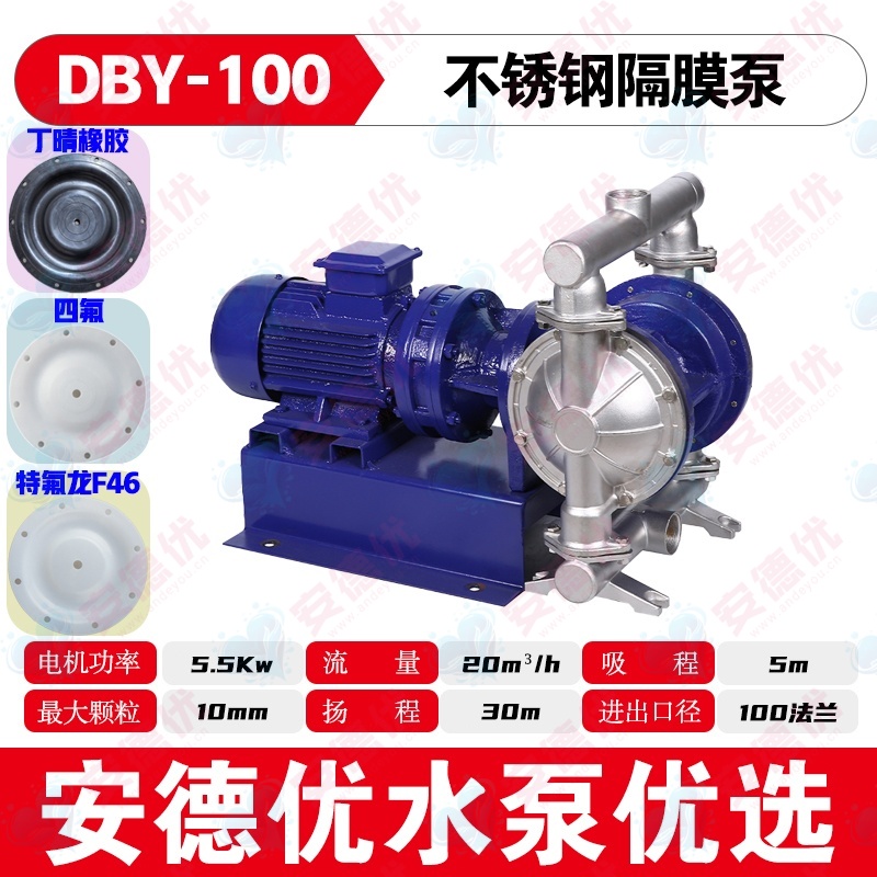 DBY不锈钢电动隔膜泵是一款高效、多功能的工业流体输送设备,具有以下显著特点: