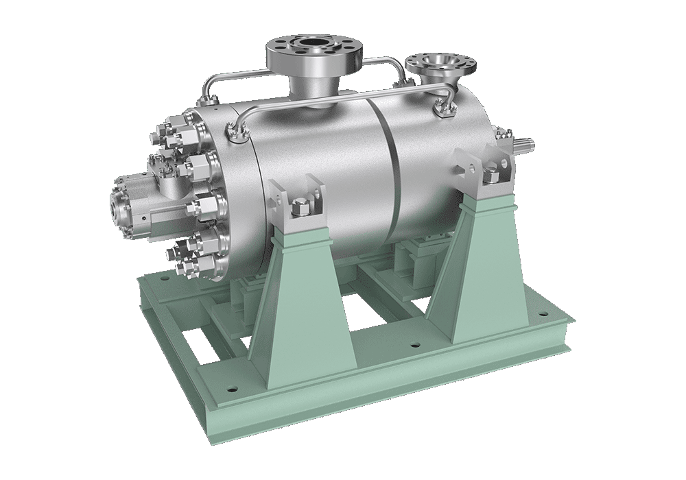 依据API610 11th规范设计制造的,符合API 610 5泵型, 整体结构:卧式、多级、两端支撑、内壳体水平剖分、外壳体径向剖分的高压离心泵;首级叶轮可为单吸式、双吸式结构。