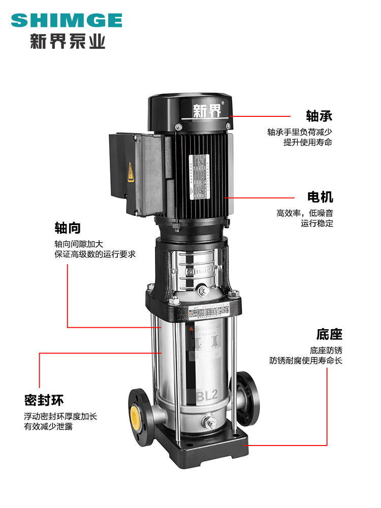 BL(T)系列轻型不锈钢立式多级离心泵,是吸收了国内外先进技术而设计制造的非自吸立式多级离心泵,采用标准立式电机和合金机械密封,更换非常方便,BL泵过流部件全为不锈钢材料,BLT泵过流部件部分为铸铁部件,可适用于轻腐蚀性介质。产品投放市场后,以其高效节能、质量可靠、使用范围广泛等特点,深受广大用户的喜爱。