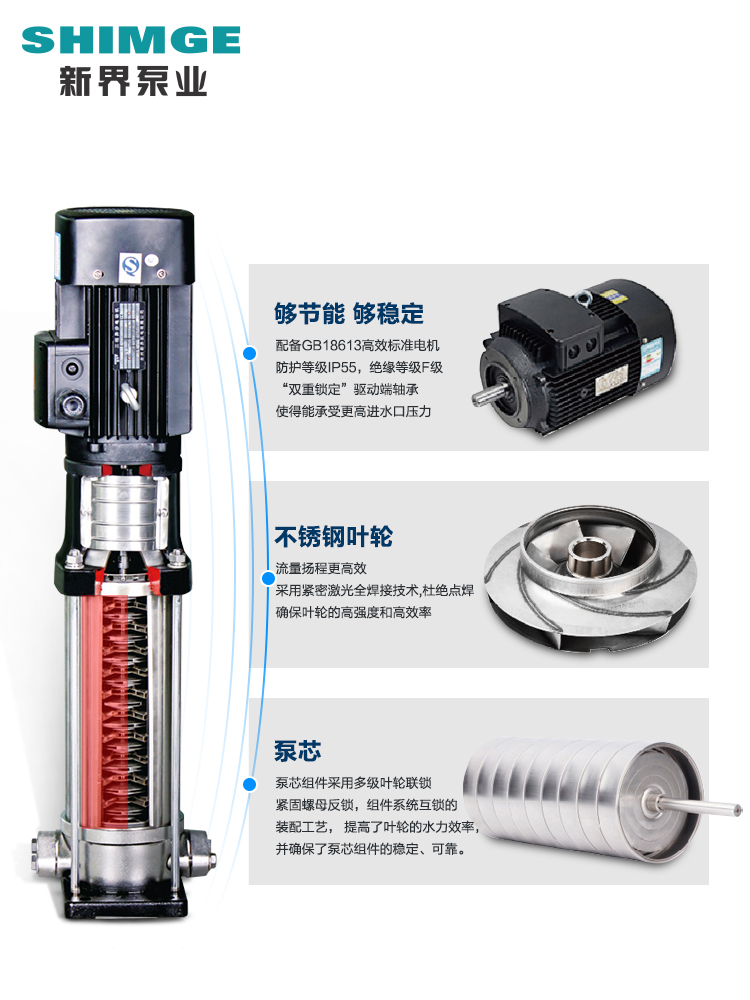 1.采用优良的水力模型和先进的制造工艺,大大提高了泵的性能及使用寿命;