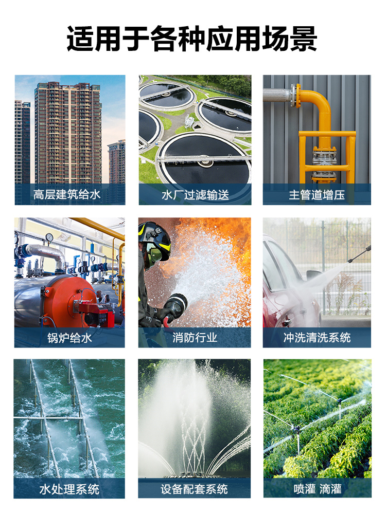 增压供水、水处理系统、工业液体输送、农田灌溉、二次增压、楼宇增压、写字楼增压、高层供水、小区二次加压