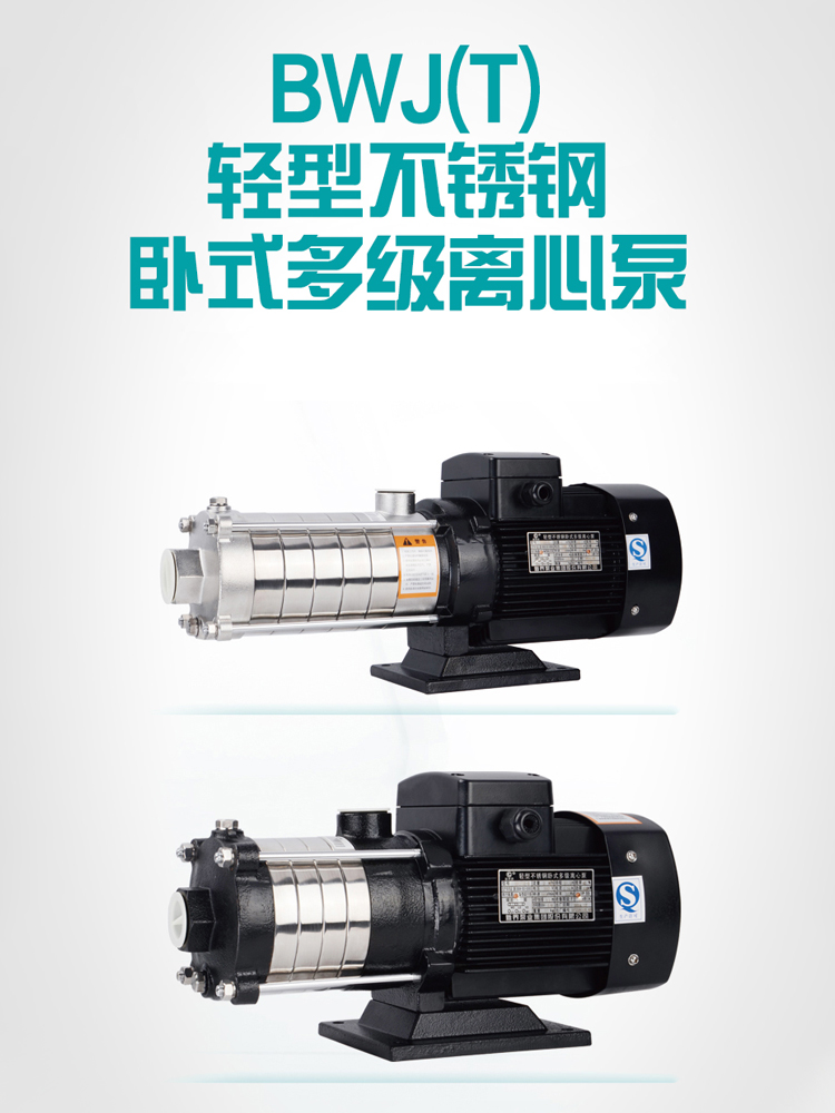 ‌新界泵业BWJ节段不锈钢多级离心泵,采用优质304不锈钢材质,结构紧凑,运行平稳。该泵配用加长轴电机,轴向入口与径向出口设计,适用于供水、工业增压、冷却系统等多种场合。轴封采用硬质合金及氟橡胶机械密封,耐腐蚀,可输送轻度腐蚀性介质。产品型号多样,覆盖不同流量和扬程需求,常温型与热水型可选,具备高效节能、静音运行等特点,是新界泵业专业打造的流体输送解决方案‌‌