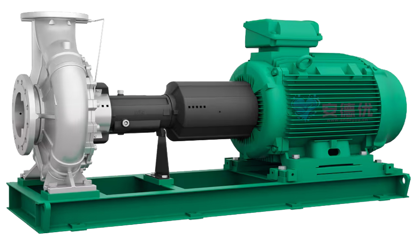 单级低压离心泵,轴向吸入,安装于底座上。标准规格,带易拆卸短节。