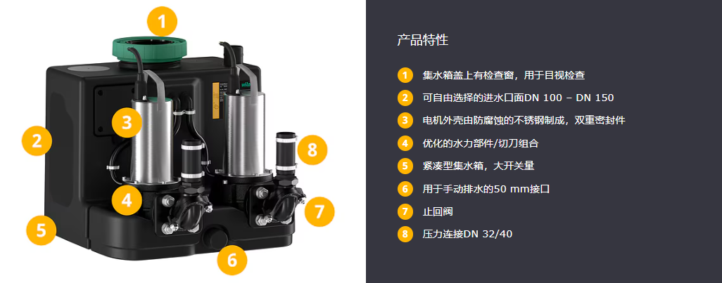 紧凑、即连即用的带切刀潜水双头泵提升系统,用于泵送含有粪便的污水。